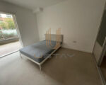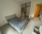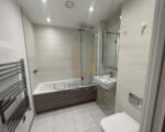 The generously sized double bedroom includes a fitted wardrobe, offering ample storage while maintaining a sleek, clutter-free appearance. Additional built-in storage is located in the hallway, a practical feature that adds to the apartment’s appeal. A modern bathroom suite, designed with clean lines and quality finishes, completes the interior, ensuring both comfort and functionality.