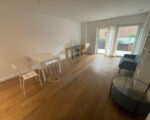 Designed with contemporary living in mind, the apartment features a fully integrated open-plan kitchen, allowing for a seamless cooking and dining experience. The kitchen flows into a spacious living/dining area, where full-height windows allow natural light to fill the space. These windows and doors open onto a large private balcony, providing an ideal spot for outdoor relaxation or entertaining guests. The layout promotes a bright and airy atmosphere, enhancing the overall sense of space.