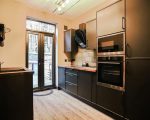 The entrance hallway welcomes you into a well-designed layout. It features a wood-effect LVT floor, direct access to the sleek kitchen, and a staircase leading to the first floor. The 2 bedroom apartment for rent on Partington Lane benefits from a contemporary kitchen complete with integrated appliances including an oven, microwave, fridge freezer, and washing machine. Stylish black wall and base units are complemented by a solid wood surface and tiled splash back, with patio doors opening to the rear yard.