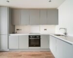 The apartment features a large, open-plan kitchen and living space, designed with floor-to-ceiling windows. Therefore, these create a bright and airy atmosphere, enhancing the modern aesthetic. The kitchen boasts a sleek, stylish finish with the latest integrated appliances, ensuring a contemporary and functional space.