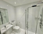 Experience the relaxing shower room, finished to a high specification. It benefits from underfloor heating, ensuring comfort at all times. Also, the touch-sensitive, wall-mounted mirror adds a modern touch, while the two-headed power shower provides a spa-like experience, all enhanced by the pristine high gloss white tiles.