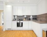 The apartment’s living area features high ceilings and large windows that flood the room with natural light. Hence, the tasteful decor enhances the charm, creating a warm and inviting atmosphere. The fully fitted kitchen with premium appliances makes meal preparation effortless and enjoyable.