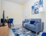 Head upstairs and you’ll discover two more large double bedrooms. Each 3 bedrooms apartment for rent comes with its own private en-suite, which includes an overhead shower, washbasin, and a compact storage unit. These well-designed rooms offer both space and functionality, ensuring everyone enjoys their own peaceful retreat.