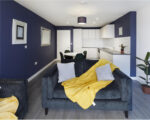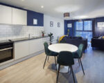 The kitchen units are light grey in colour with a darker work surface, it has integrated CDA appliances including a 4-ring hob, a dishwasher, and fridge/freezer with a wine rack. The washer/dryer is located within the utility cupboard which is where you will also find your water meter for easy access to meter readings. As well as being fully furnished, your unit will also feature grey vertical blinds in each room including blackout in the bedroom for that perfect nights sleep, plus more dimmable lights in the bedroom. Broadband is live on the day you move in.