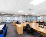 This office space is equipped with air conditioning, suspended ceilings with inset LED lighting (PIR), and double glazing, providing a comfortable and energy-efficient environment. So, the layout includes a mix of executive offices and open-plan workspace, catering to different business needs.