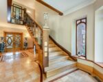 Impressive central hallway with maple and Brazilian mahogany flooring (throughout) and grand wooden staircase.