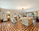 Formal sitting room perfect for entertaining with bar area and French doors onto the large york stone terrace. Coal-effect fire set within an imported Italian white marble fireplace.