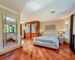 • Large master suite including a sitting area with coal-effect gas fire within an imported Italian white marble fireplace. Doors out onto the extensive stone-floored first-floor balcony overlooking the front gardens. So, dressing room with built-in vanity area, span of wardrobes. Fully tiled en suite bathroom with bath, shower enclosure, floating wash hand basin, bidet and WC.