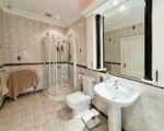 Entering through the grand hallway, you’re welcomed by a fusion of classic design and contemporary elegance, showcased by gleaming hardwood floors and an inviting atmosphere that hints at the luxury awaiting within. The ground floor hosts two generously proportioned reception rooms flooded with natural light, perfect for both entertaining and unwinding. One of these spaces seamlessly merges living and dining areas, adorned with large windows that bathe the room in sunlight, accentuating the polished hardwood floors and tasteful décor, creating a versatile space equally suited for casual relaxation or sophisticated dining. The kitchen, a haven for culinary enthusiasts, is complemented by an additional kitchen to accommodate diverse cooking preferences and features a convenient larder off to the side for ample storage and pantry needs. Rounding off the ground floor are two guest WCs, providing convenience and additional storage.